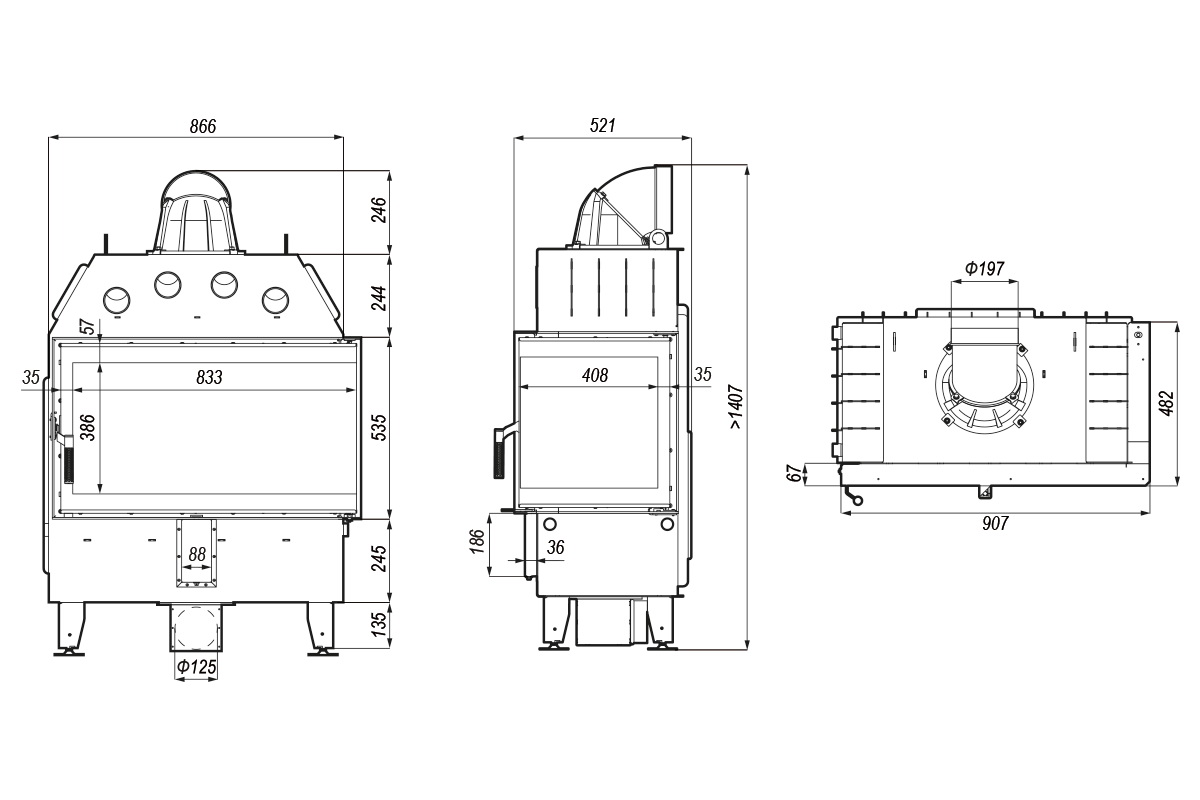Kominek w standardzie wyposażony w stalowy ruszt, który można w łatwy sposób zamienić na dedykowaną ceramiczną zaślepkę, zmieniając palenisko na bezrusztowe.