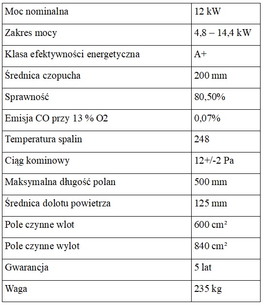 Kominek w standardzie jest bezrusztowy, istnieje możliwość wyposażenia w stalowy ruszt na etapie produkcji.