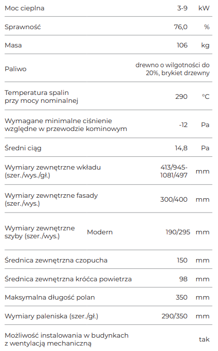 Dzięki szczelności całego korpusu oraz możliwości podłączenia powietrza z zewnątrz budynku wkład może być z powodzeniem stosowany w pomieszczeniach z rekuperacją (w przypadku wkładów narożnych wymaga to zastosowania jednolitej szyby)