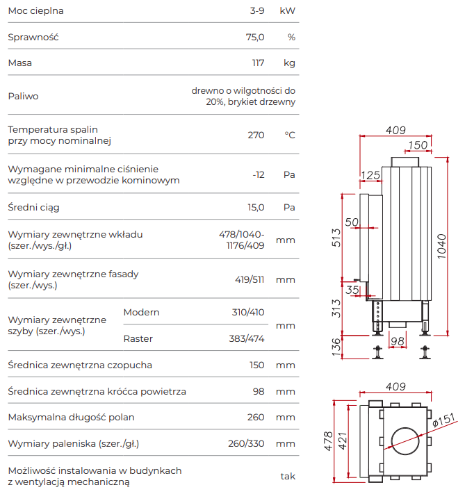 Dzięki szczelności całego korpusu oraz możliwości podłączenia powietrza z zewnątrz budynku wkład może być z powodzeniem stosowany w pomieszczeniach z rekuperacją (w przypadku wkładów narożnych wymaga to zastosowania jednolitej szyby)