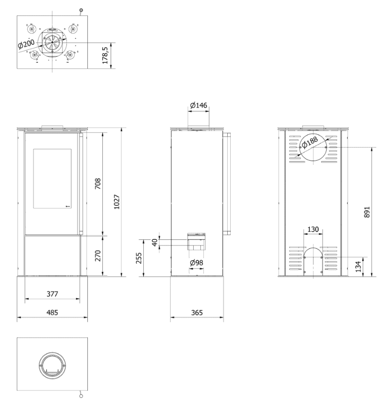 – ułatwiony montaż pieca dzięki otworowi w podstawie – Ø200mm,