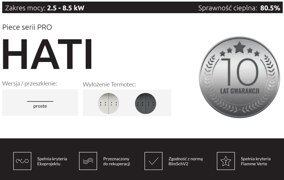 – spełnia kryteria EKOPROJEKTU, restrykcyjnej niemieckiej normy BlmschV II oraz Flamme Verte,