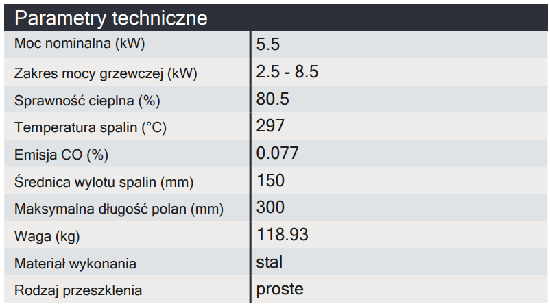 – deflektor wydłużający drogę spalin dla optymalnego wykorzystania energii,