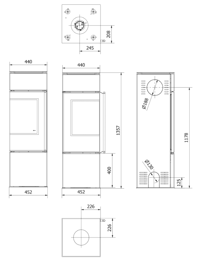 – ułatwiony montaż pieca dzięki otworowi w podstawie – Ø200mm,