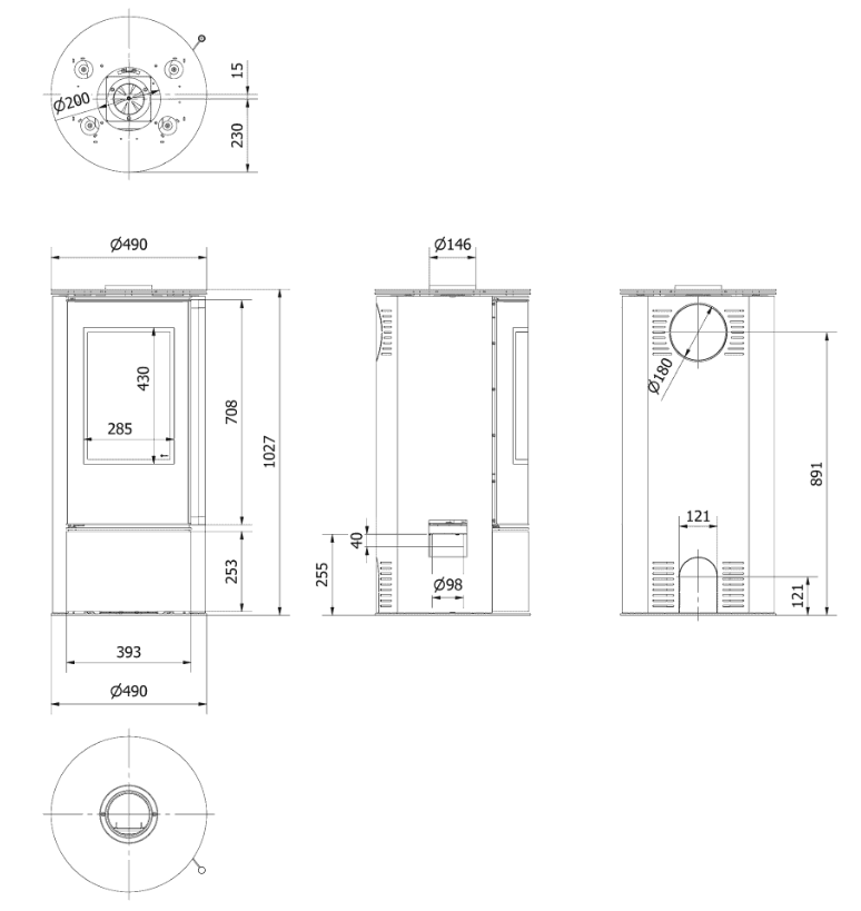 Możliwość́ podłączenia wylotu spalin zarówno od góry jak i tyłu urządzenia. W sytuacji korzystania z tylnego wylotu, w zestawie znajduję się zaślepka górnej płyty, która skutecznie ukrywa górny wylot.