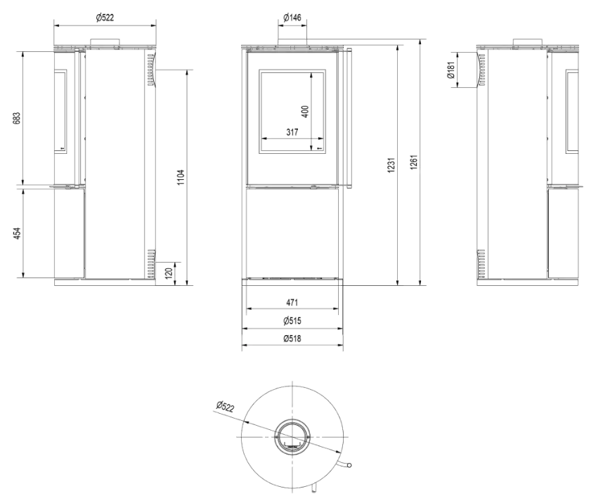 – ułatwiony montaż pieca dzięki otworowi w podstawie – Ø200mm,