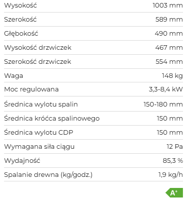 Wkłady kominkowe HEAT przeznaczone są do pracy konwekcyjnej i akumulacyjnej za pomocą kratek wentylacyjnych. Rama drzwi wykonana jest ze specjalnego, sztywnego profilu walcowanego. Szyba drzwiczek posiada nadruk. Wkłady posiadają system CDP – centralne doprowadzenie powietrza zewnętrznego. Komora spalania wyłożona jest cegłami szamotowymi i posiada wychylne palenisko żeliwne z popielnikiem. Dzięki dopływowi powietrza wtórnego, które opływa szybę drzwiczek, nie dochodzi do osadzania zabrudzeń. Regulację dopływu powietrza pierwotnego i wtórnego można prowadzić za pomocą jednego elementu sterującego. Do wkładów kominkowych można dokupić akumulacyjny zestaw boczny oraz górne pierścienie akumulacyjne Mammoth, które przedłużą czas promieniowania ciepła o więcej niż 12 h. Innowacyjny system odprowadzania spalin – Double spin, zwiększa skuteczność i ekologiczność wkładu kominkoweg