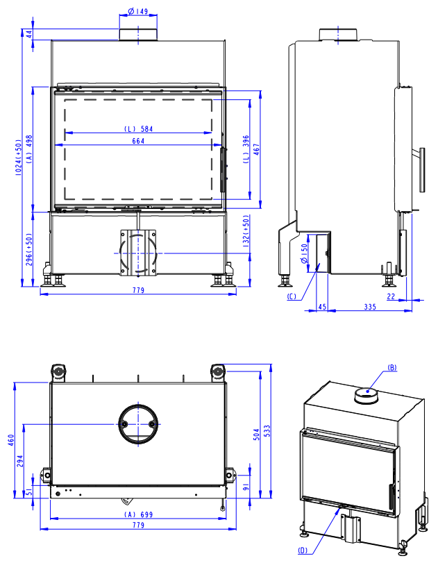 Wkłady kominkowe HEAT proste z otwieraniem drzwiczek na bok