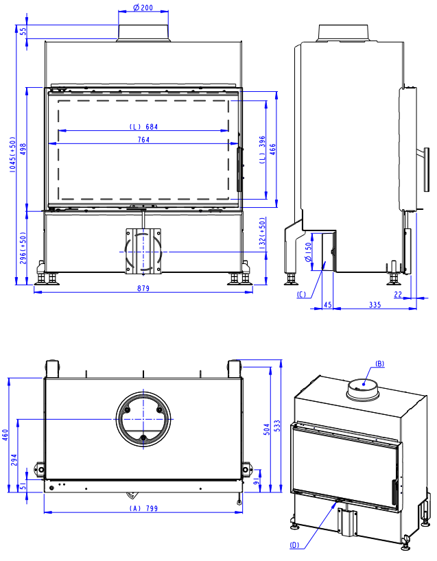 AKUMULACYJNY ZESTAW GÓRNY ROMOTOP MAMMOTH dla wkładów kominkowych o średnicy odprowadzenia spalin 150 mm