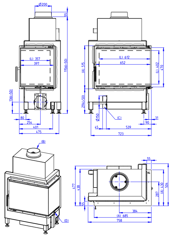 AKUMULACYJNY ZESTAW GÓRNY ROMOTOP MAMMOTH dla wkładów kominkowych o średnicy odprowadzenia spalin 150 mm