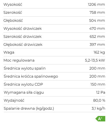 • akumulacja ciepła – grzanie także po zakończeniu palenia we wkładzie