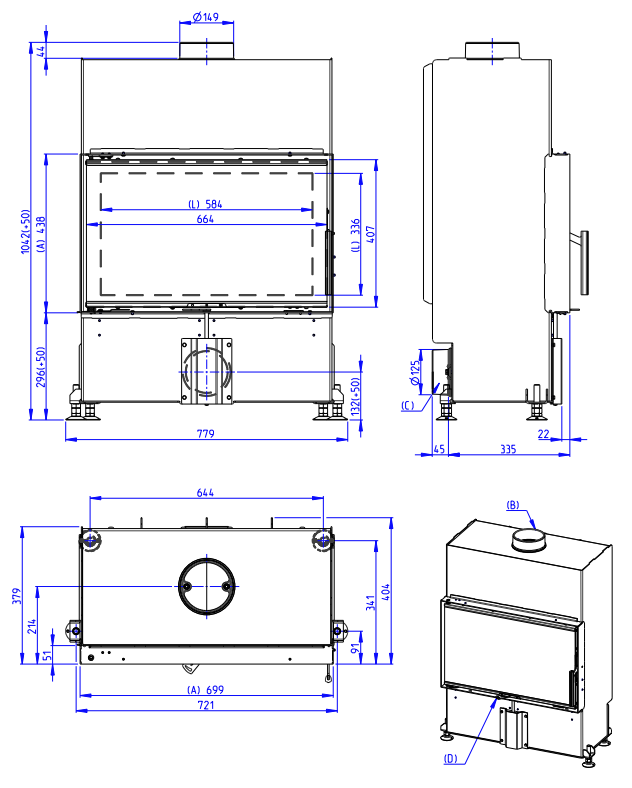 Wkłady kominkowe HEAT proste z otwieraniem drzwiczek na bok