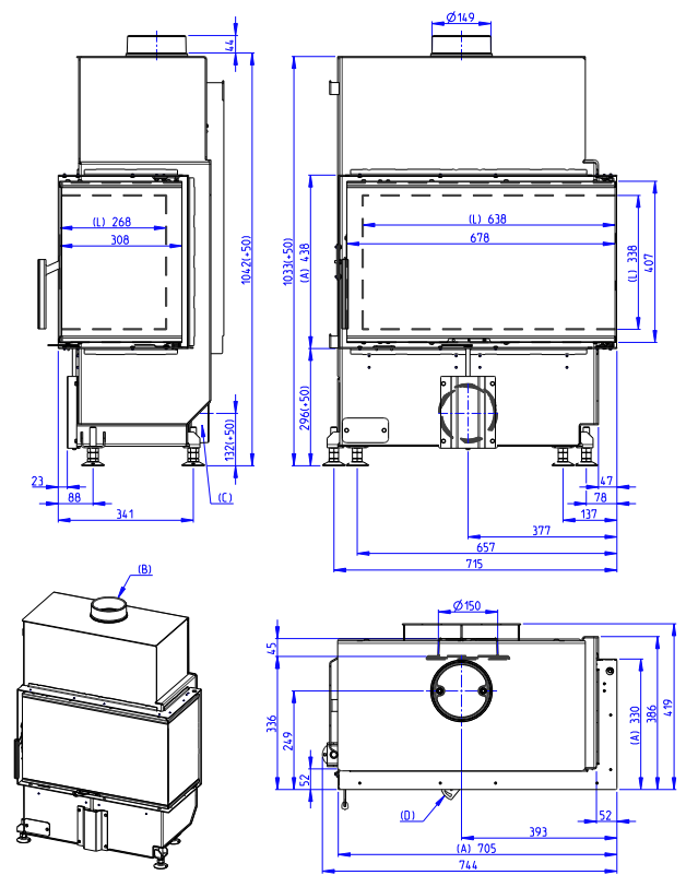 AKUMULACYJNY ZESTAW GÓRNY ROMOTOP MAMMOTH dla wkładów kominkowych o średnicy odprowadzenia spalin 150 mm