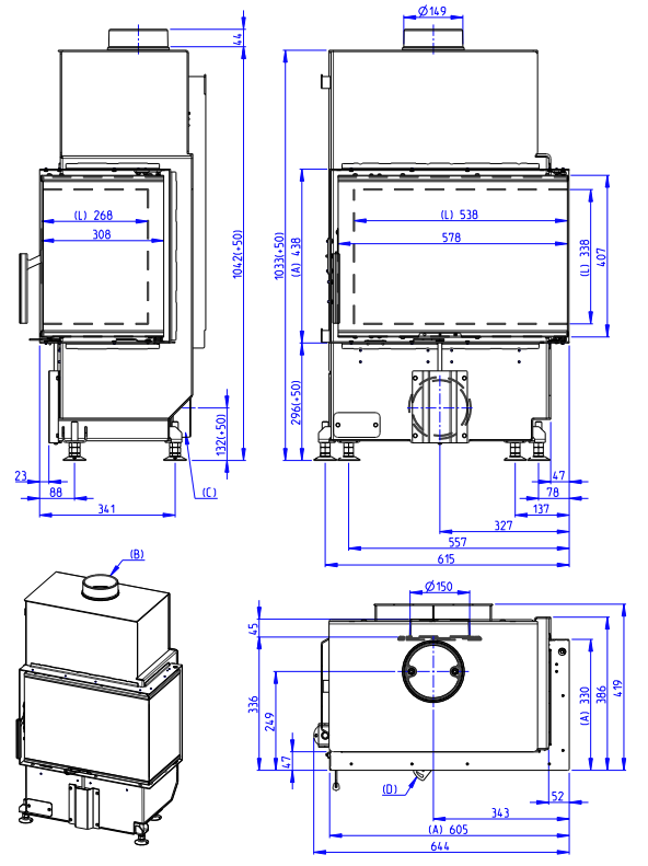 AKUMULACYJNY ZESTAW GÓRNY ROMOTOP MAMMOTH dla wkładów kominkowych o średnicy odprowadzenia spalin 150 mm